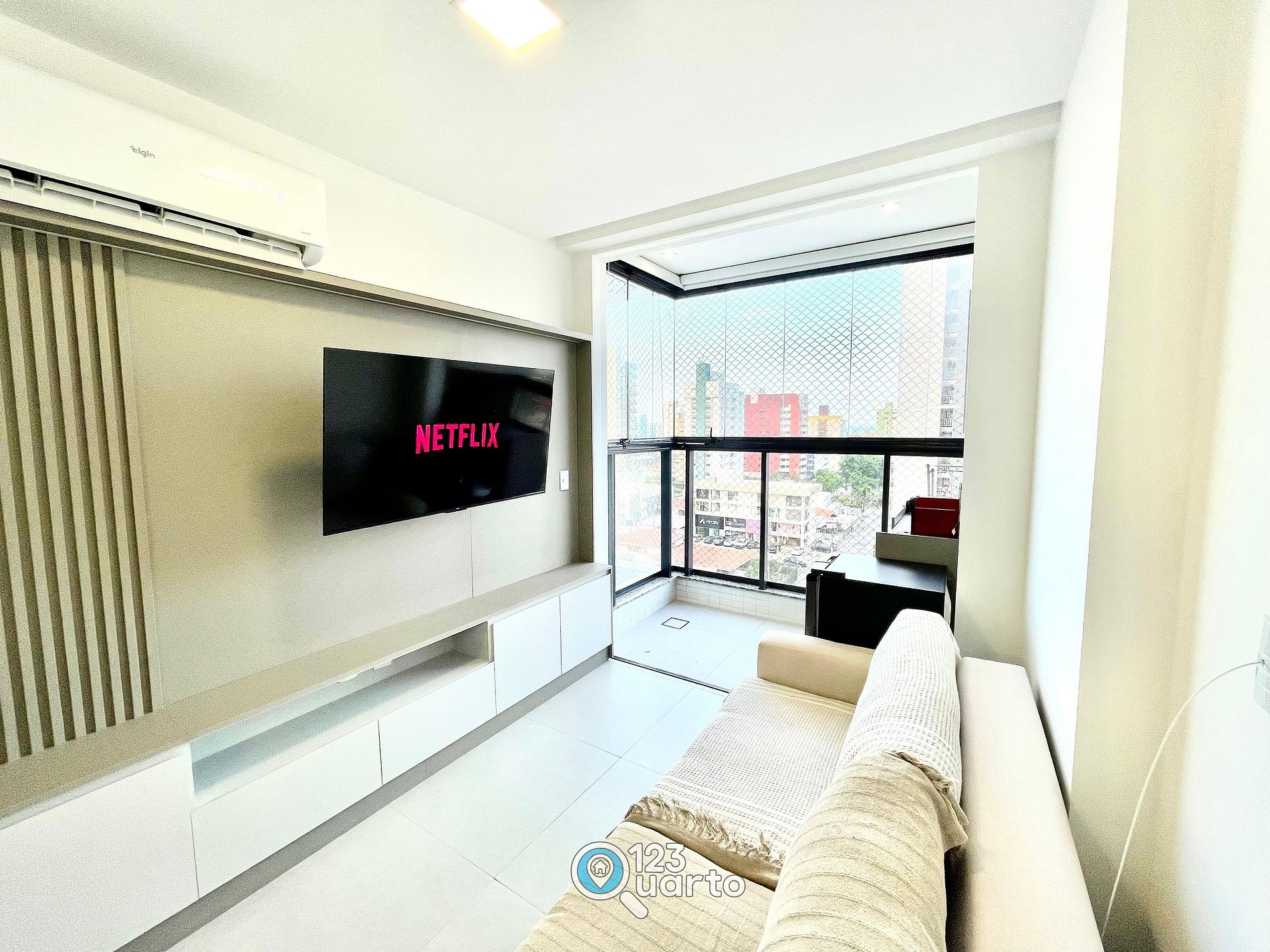 O espaço no Solaz Smart Living se destaca pelo design moderno, funcional e cuidadosamente planejado para proporcionar conforto e praticidade. A acomodação conta com móveis novos, ambiente climatizado, iluminação agradável e itens essenciais que garantem uma estadia tranquila. Cada detalhe foi pensado para oferecer bem-estar, desde a organização inteligente do ambiente até a qualidade dos equipamentos disponíveis.